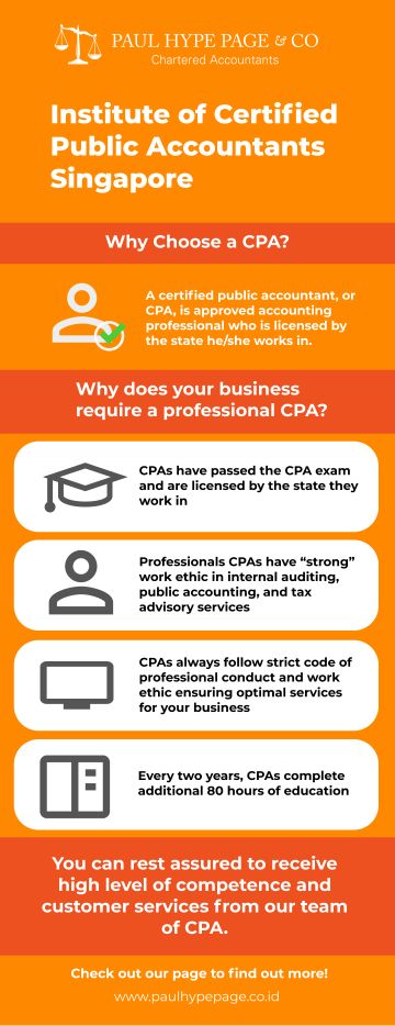 Paul Hype Page & Co. is a certified CPA firm in Singapore specializing in providing “high quality” auditing and public accounting services under the supervision of a CPA. A certified public accountant, or CPA, is approved accounting professional who is licensed by the state he/she works in. They usually keep “up-to-date” with the ever-changing tax law, rules, and regulations to provide the best possible accounting and auditing services for business firms, like yours.